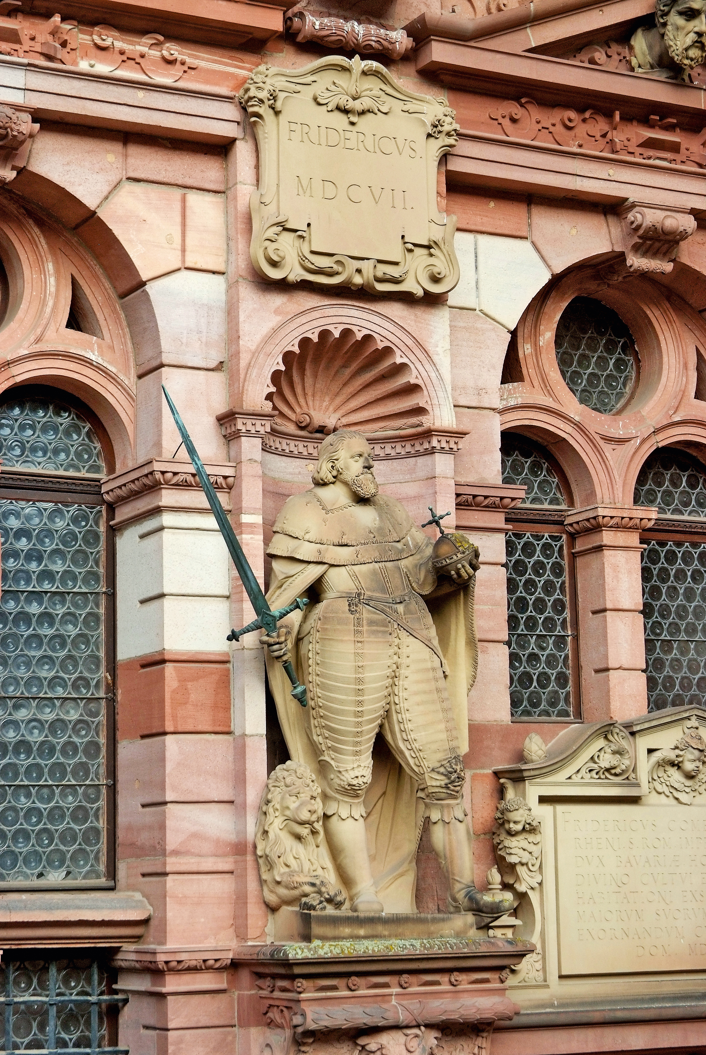 Many sculptures decorate the palace buildings – here, a statue of the Palatine prince-elector Friedrich IV.